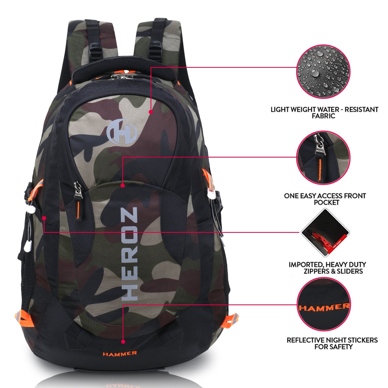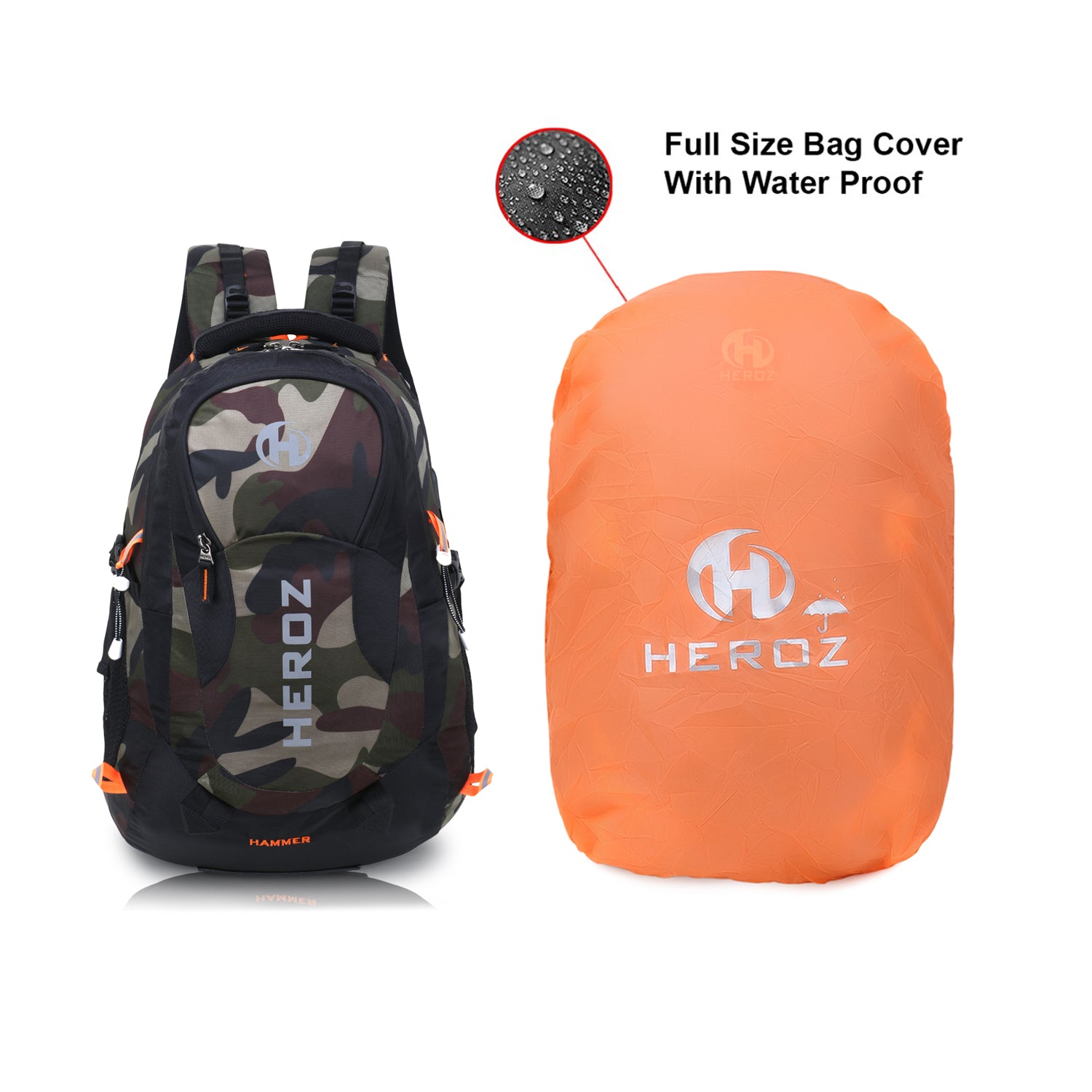 HEROZ Hammer Unisex Nylon 35 L Travel Laptop Backpack Water Resistant Slim Durable Fits Up to 17.3 Inch Laptop Notebook (Black & Jungle)