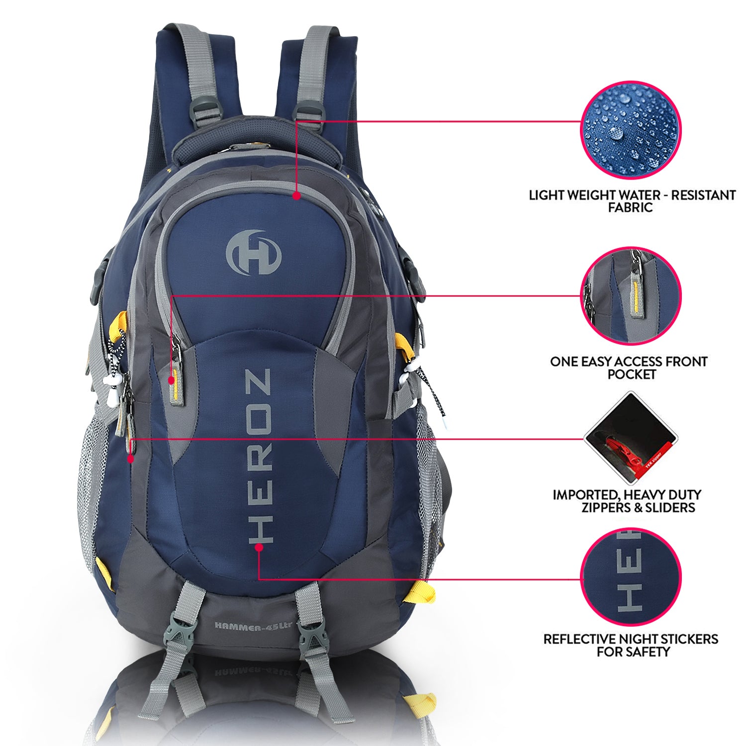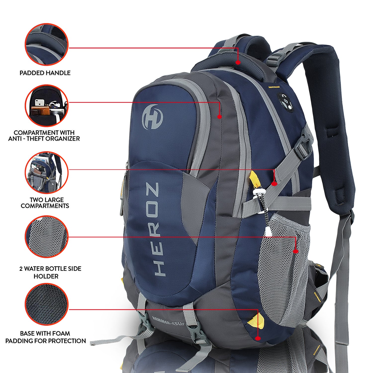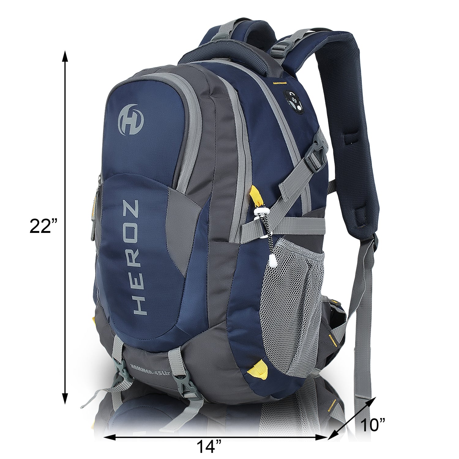 HEROZ Hammer Unisex Nylon 45 L Travel Laptop Backpack bags for mens Water Resistant Slim Durable Fits Up to 17.3 Inch (Grey & Navy Blue)