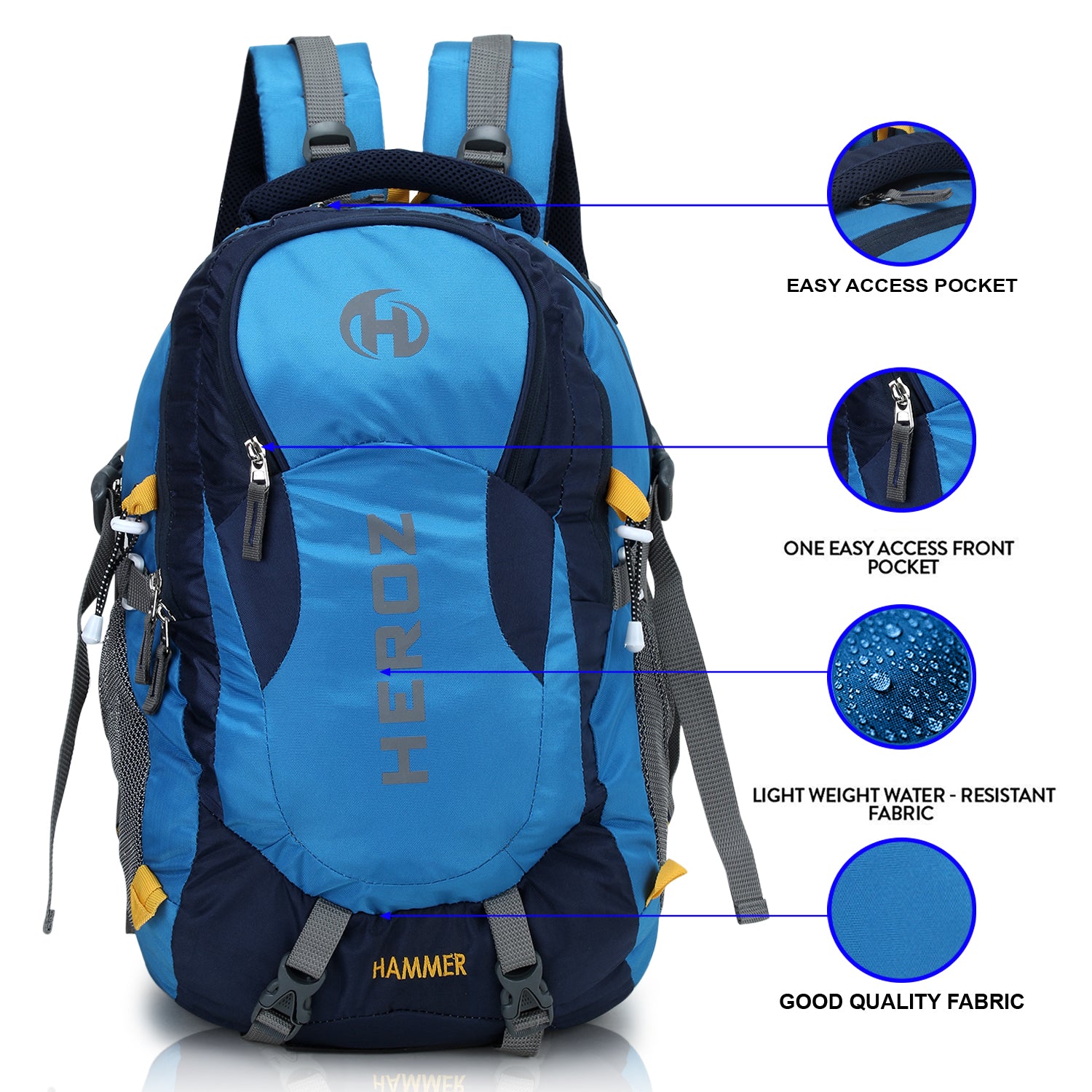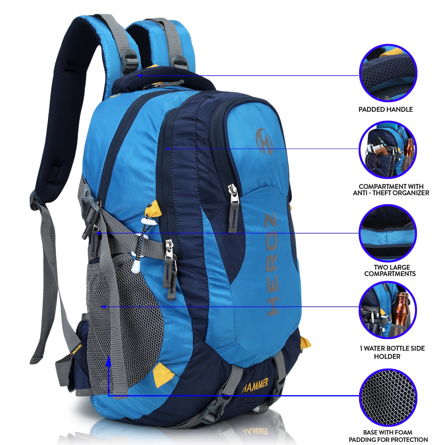 HEROZ Hammer Unisex Nylon 45 L Travel Laptop Backpack for Men – Water Resistant, Slim & Durable, Fits Up to 17.3 Inch Laptop (Navy Blue & Sky Blue)