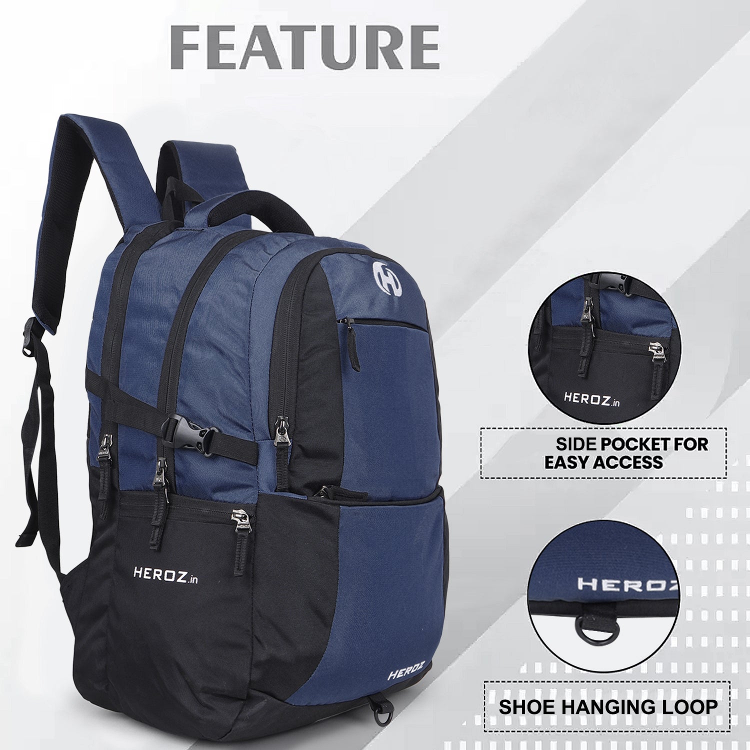 The HEROZ Heden 40L Laptop Backpack (Black & Navy Blue) is a smart, spacious, and secure backpack designed for college students, working professionals, and travelers. With a 17-inch padded laptop sleeve, USB charging port, anti-theft pocket, rain cover, and organized compartments, this backpack delivers the perfect balance of style, safety, and functionality for everyday use.