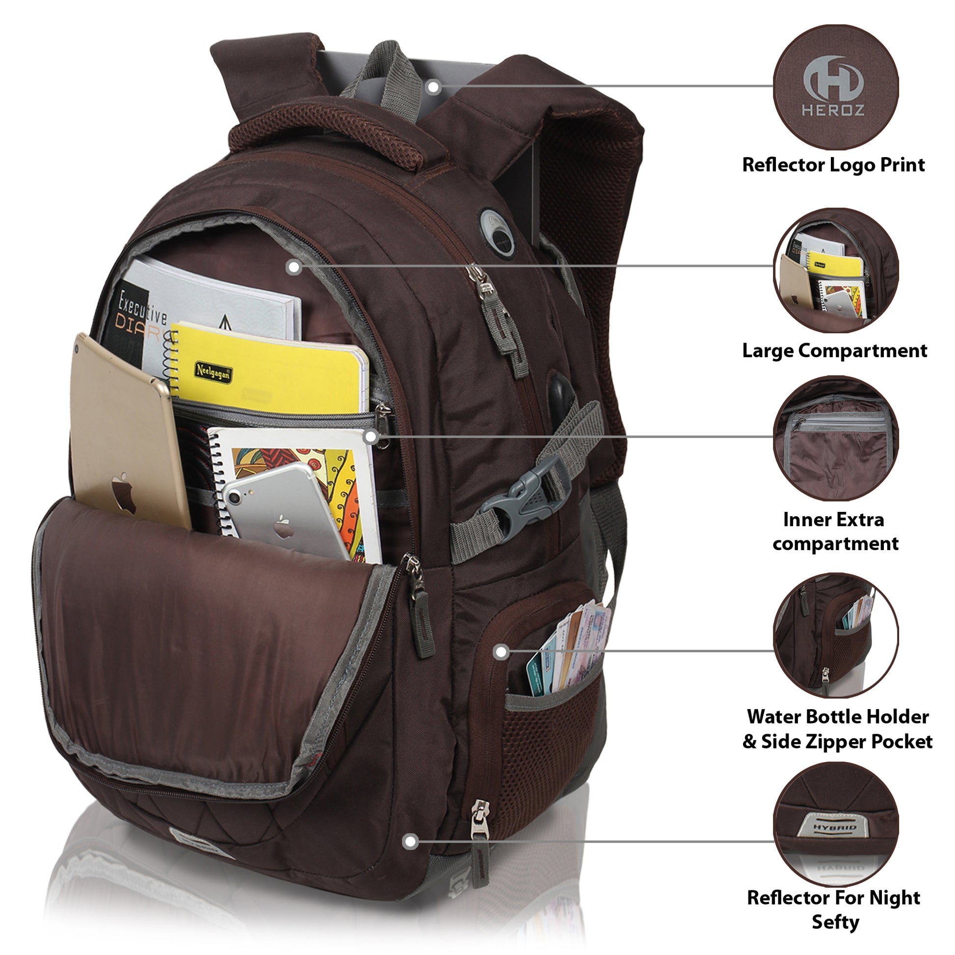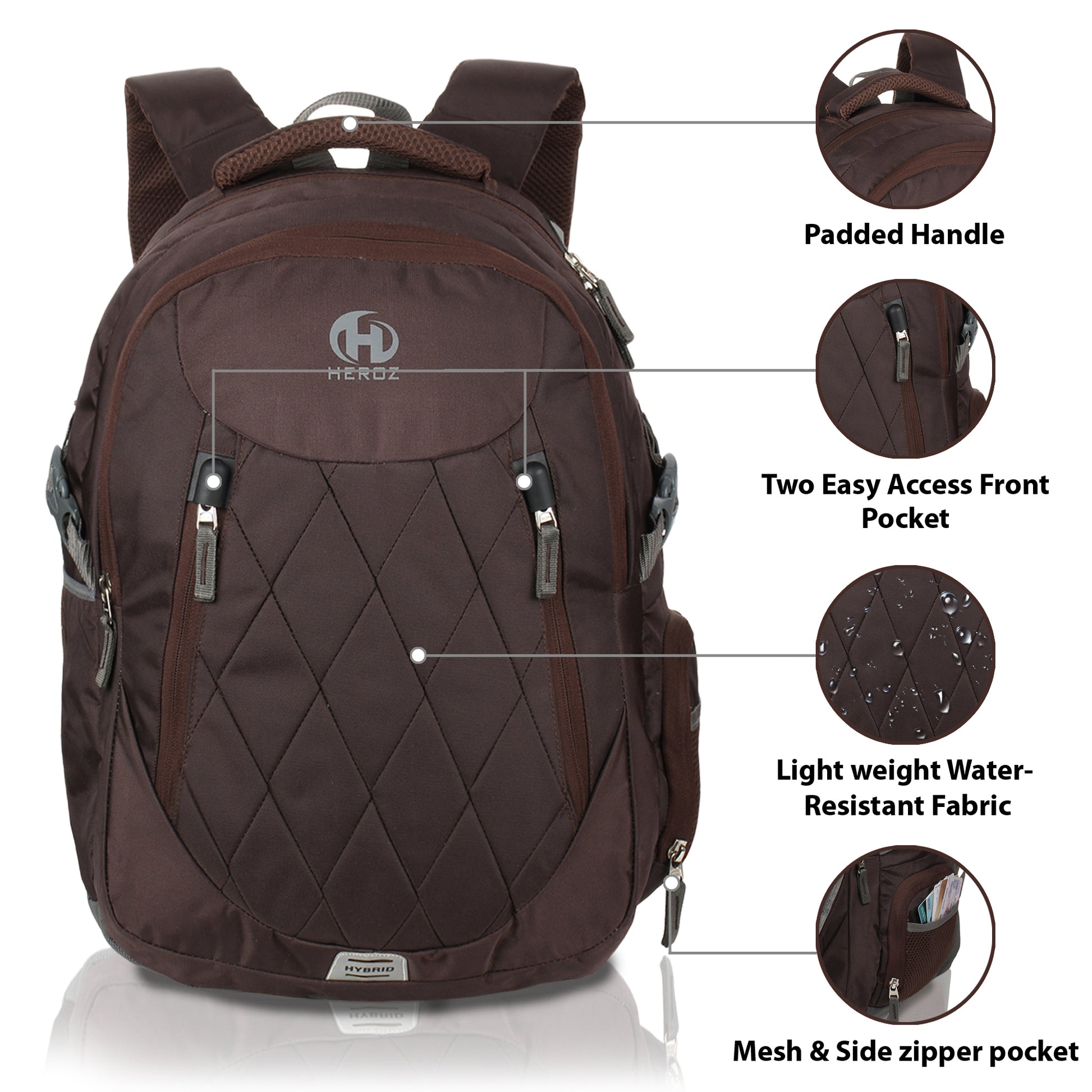 HEROZ Hybrid Laptop Backpack, Unisex Anti-theft Travel Backpack, Business School Bookbag with USB Charging Port for Men & Women Fit for 15.6 Inches Laptop (Brown)